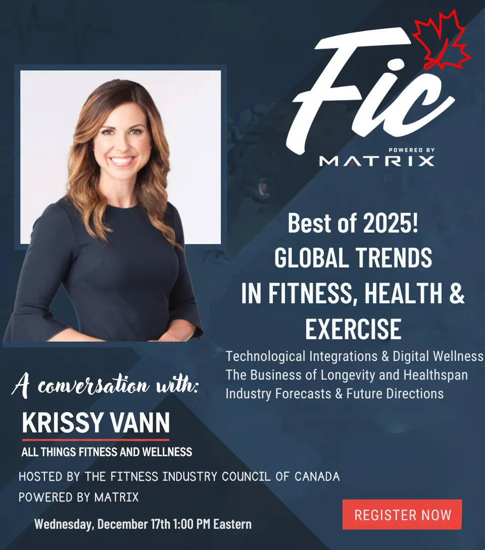 📣 Join the Fitness Industry Council of Canada (FIC) and Matrix for an exclusive look at the Best of 2025! GLOBAL TRENDS IN FITNESS, HEALTH & EXERCISE! This can't-miss conversation features Krissy Vann of All Things Fitness and Wellness, where she'll dive into critical topics like Technological Integrations & Digital Wellness, The Business of Longevity & Healthspan, and Industry Forecasts & Future Directions. Get ahead of the curve and secure your spot for this essential discussion on Wednesday, December 17th at 1:00 PM Eastern. REGISTER NOW to elevate your knowledge!